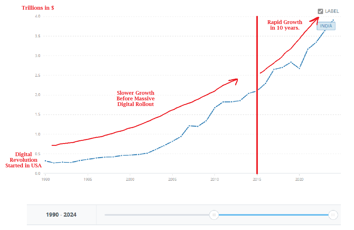 India in 2015 pushed for a massive rollout of digital infrastructure. They wanted to increase the number of people who had internet access. In 2015, that number was 15%. But as of 2025, that number was 70%. This massive jump has led to India becoming one of the largest economies in the world and producing very talented individuals competing on the frontier of STEM.