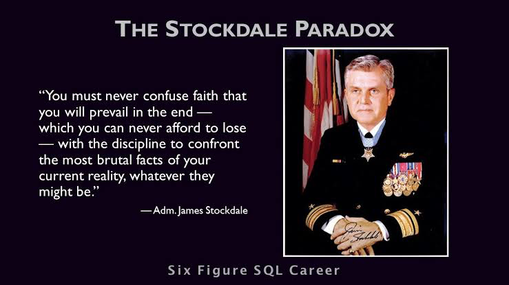 Admiral Stockdale, when captured, told himself he would be there for years to come. He confronted that brutal reality, which allowed him to rationalise the situation he was in.