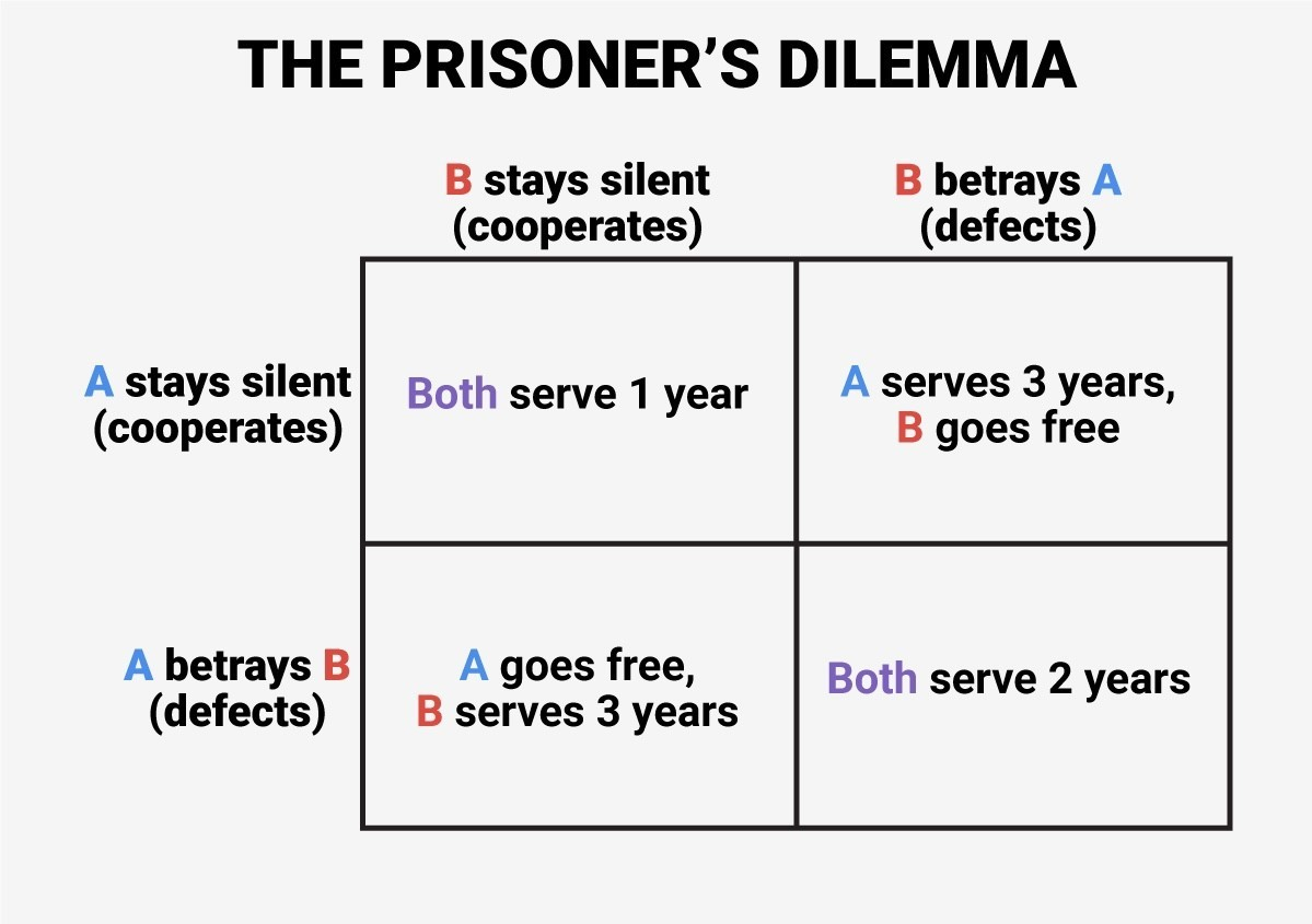 The prisoner's dilemma is one of the first things you learn in game theory, an area of maths that covers the best answer to a situation when playing against two or more parties.