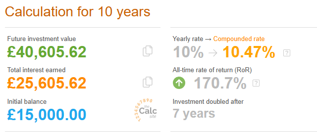 However, if I waited until I was 35 and therefore let my £15,000 sit in the S&P 500 for 10 years, I could've made a return of £25,000 profit, enough for me to buy two of the same cars!