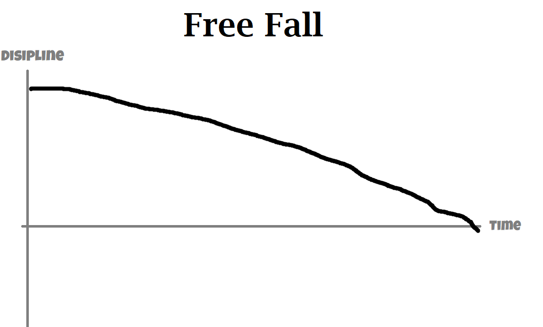 If I stopped trying to be disciplined every time I failed, I wouldn't be on a roller coaster (where I'm going up and down in life). I would be free-falling with no brakes.
