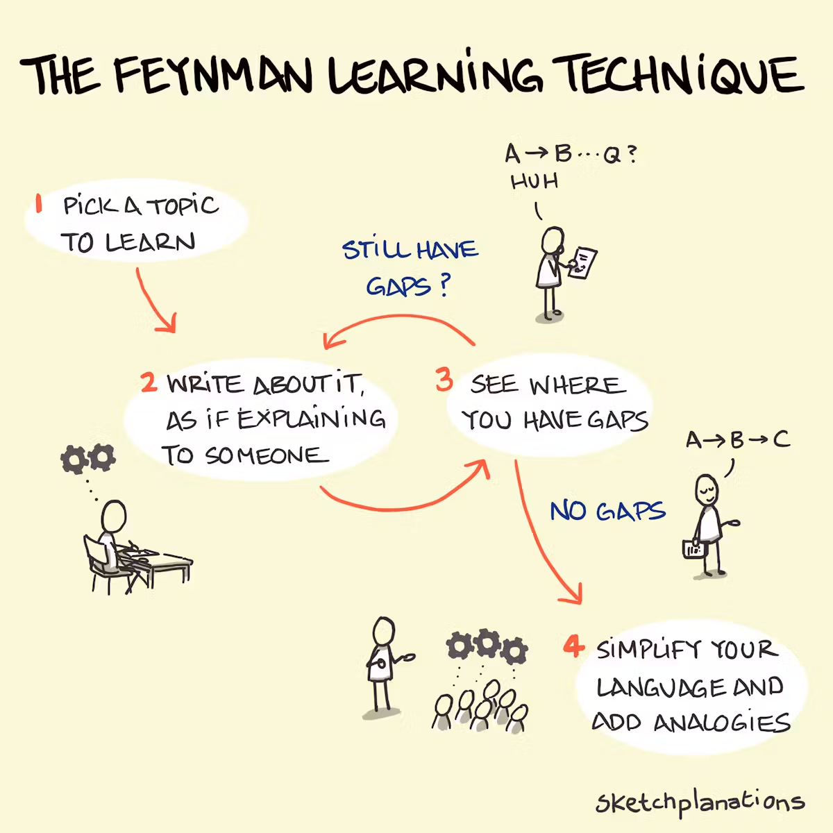 Scott Young popularised the Feynman Technique as a way of establishing a simple process that helped you get as good at explaining complicated topics as Richard Feynman was.