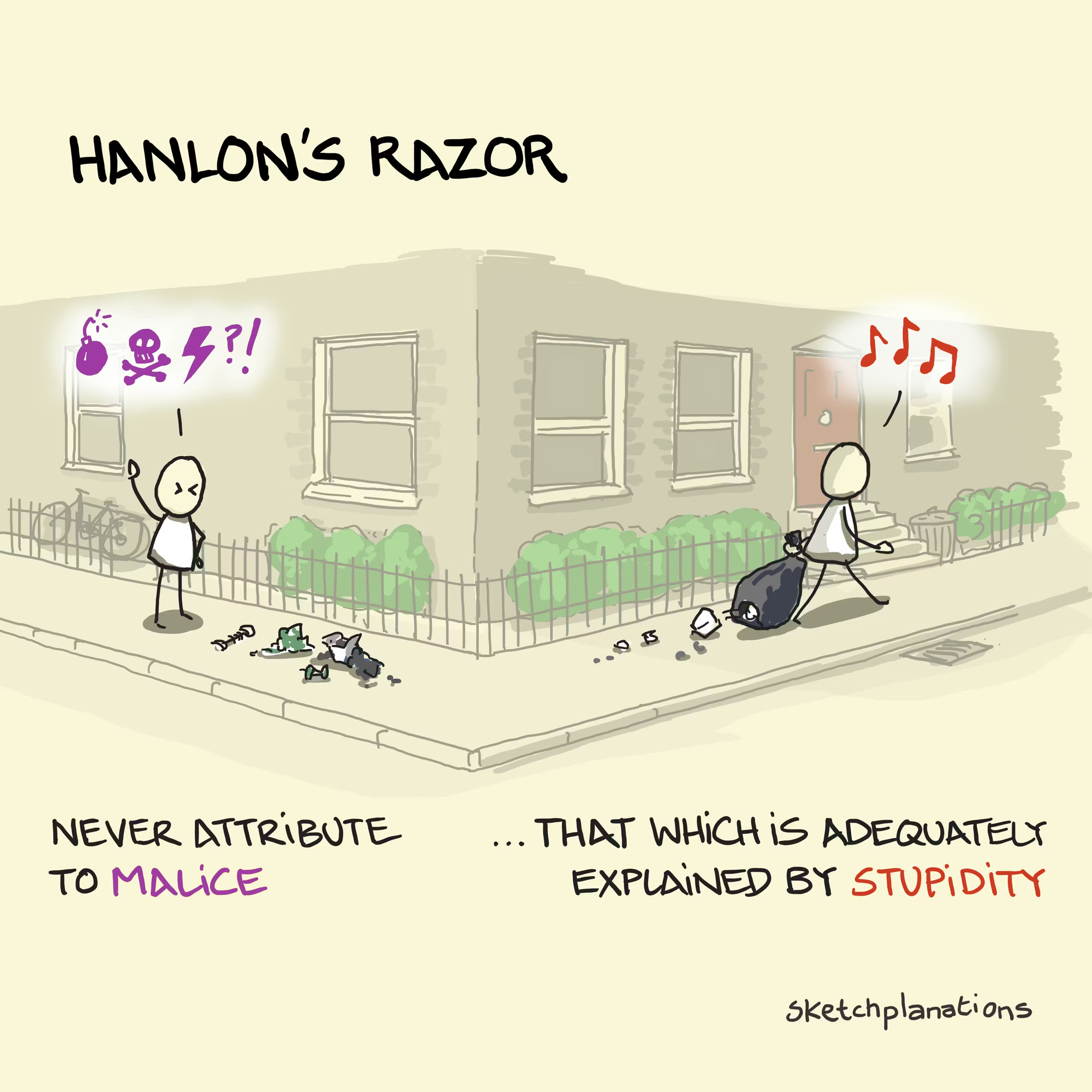 Throwing rubbish on the floor. Leaving a toilet with no toilet roll. Cutting you off in traffic. These are some things that would immediately cause us to be upset with the person who done it, usually because we believe they did it with malice. But Hanlon's Razor tells us otherwise.